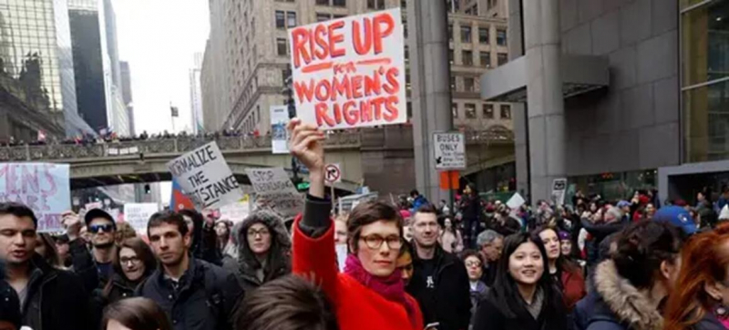 Demonstration in support of women’s rights in 2017 in New York. No country in the world has achieved full legal equality of the sexes. Women